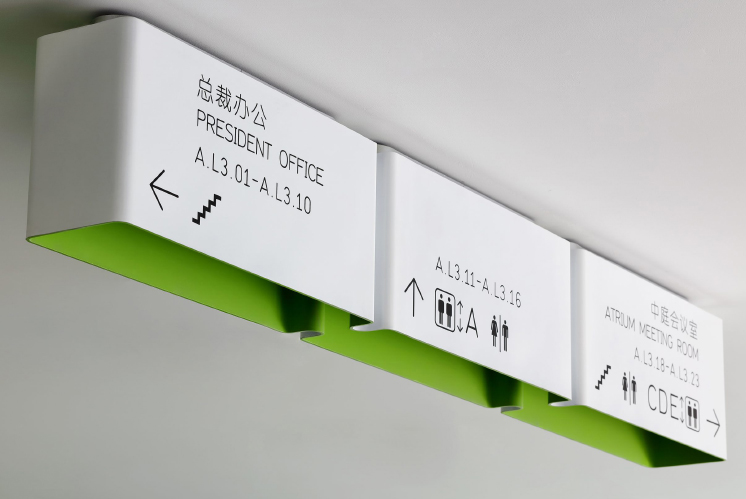 樓層索引標(biāo)識設(shè)計一般放置在樓梯口和電梯口處,用于標(biāo)明各樓層房間的單位。辦公樓中的樓層牌主要用于標(biāo)識樓層樓號,以便行人知道自己所在的樓層。清楚明晰的樓層索引是建筑必不可少的組成部分。