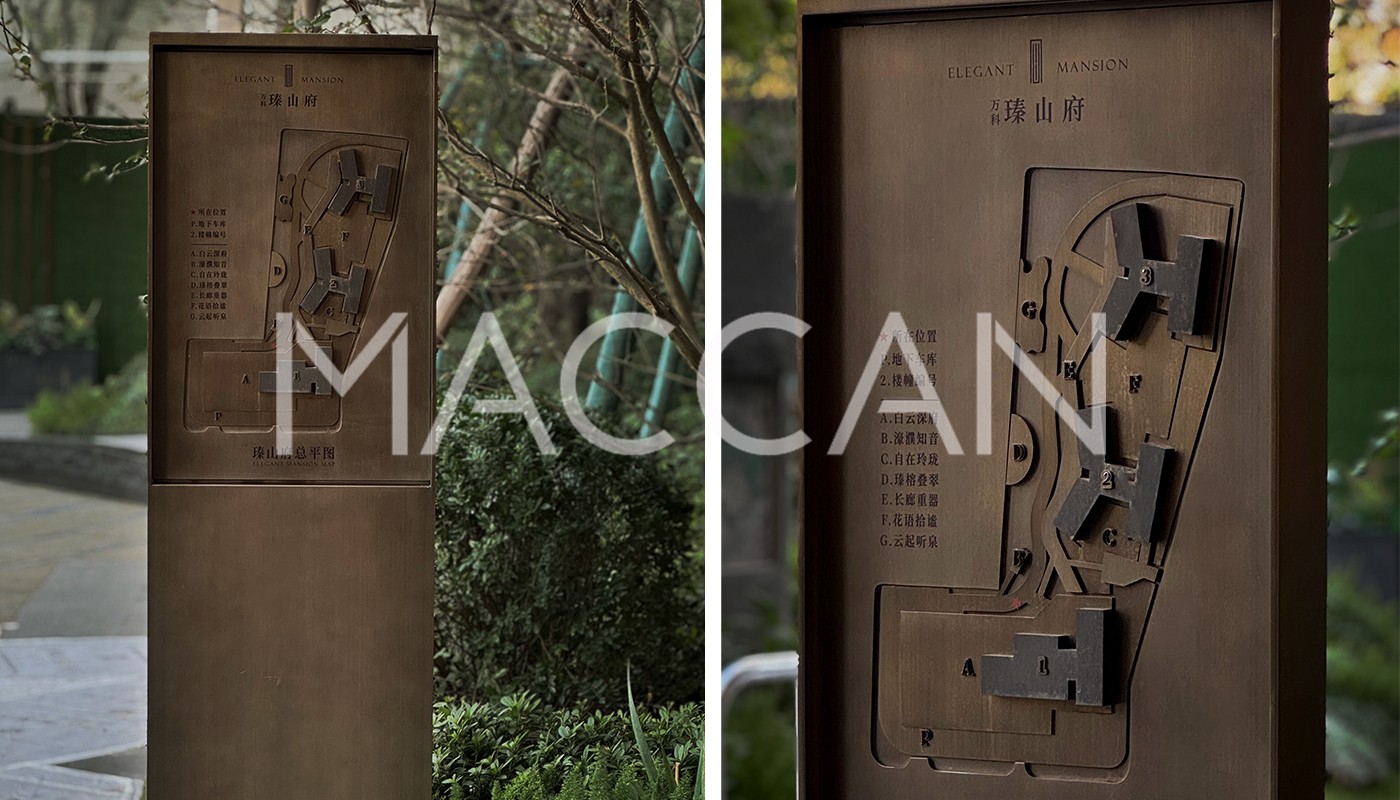 萬科·瑧山府住宅項目位于廣州白云新城核心區(qū),擁有無遮擋的頭排云山視野,并與千億總部經(jīng)濟(jì)集群隔街相望。進(jìn)入萬科瑧山府,仿佛置身于云山之中,每一步都充滿了寧靜園林的巧思與韻味,讓人在信步閑庭間享受寧靜與和諧。麥肯以一貫的精湛工藝,為每一位追求“山居”的居者,打造理想的空間氛圍,追求每一個細(xì)節(jié),都如同藝術(shù)品般精致完美,采用古銅做舊銘牌,結(jié)合三維金屬立體字的標(biāo)識,營造出時光沉淀的韻味。